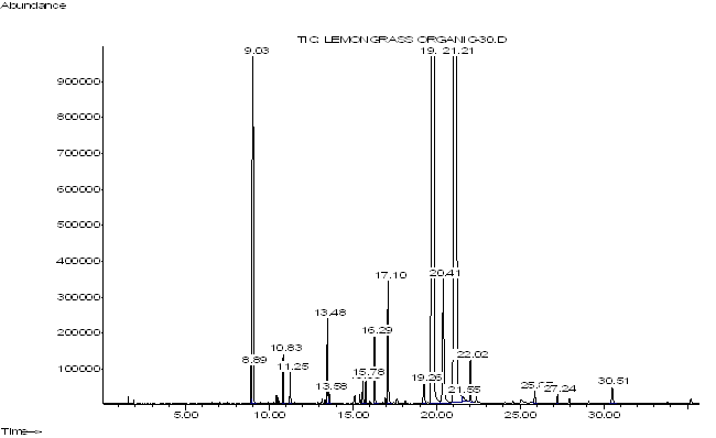 Хроматограмма эфирного масла западно-индийского лемонграсса (HP-5)