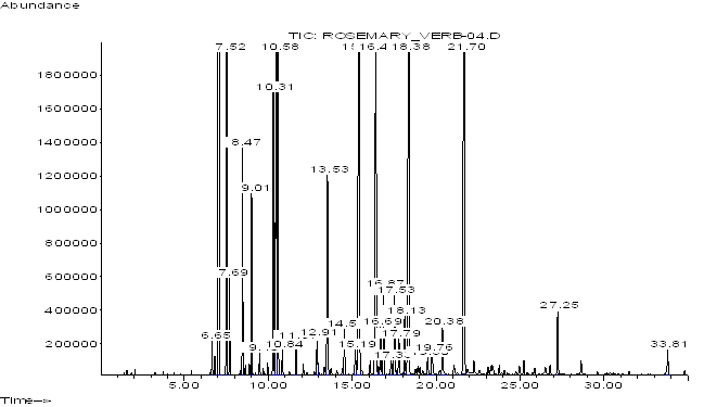 Хроматограмма эфирного масла розмарина обычного типа (HP-5)