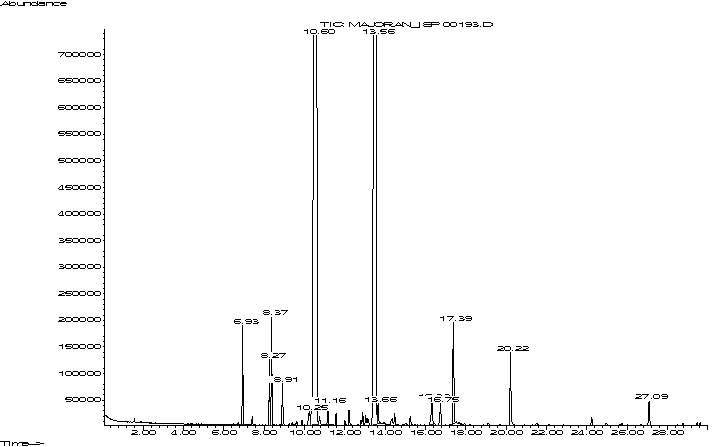 Хроматограмма эфирного масла испанского майорана линалоольного хемотипа